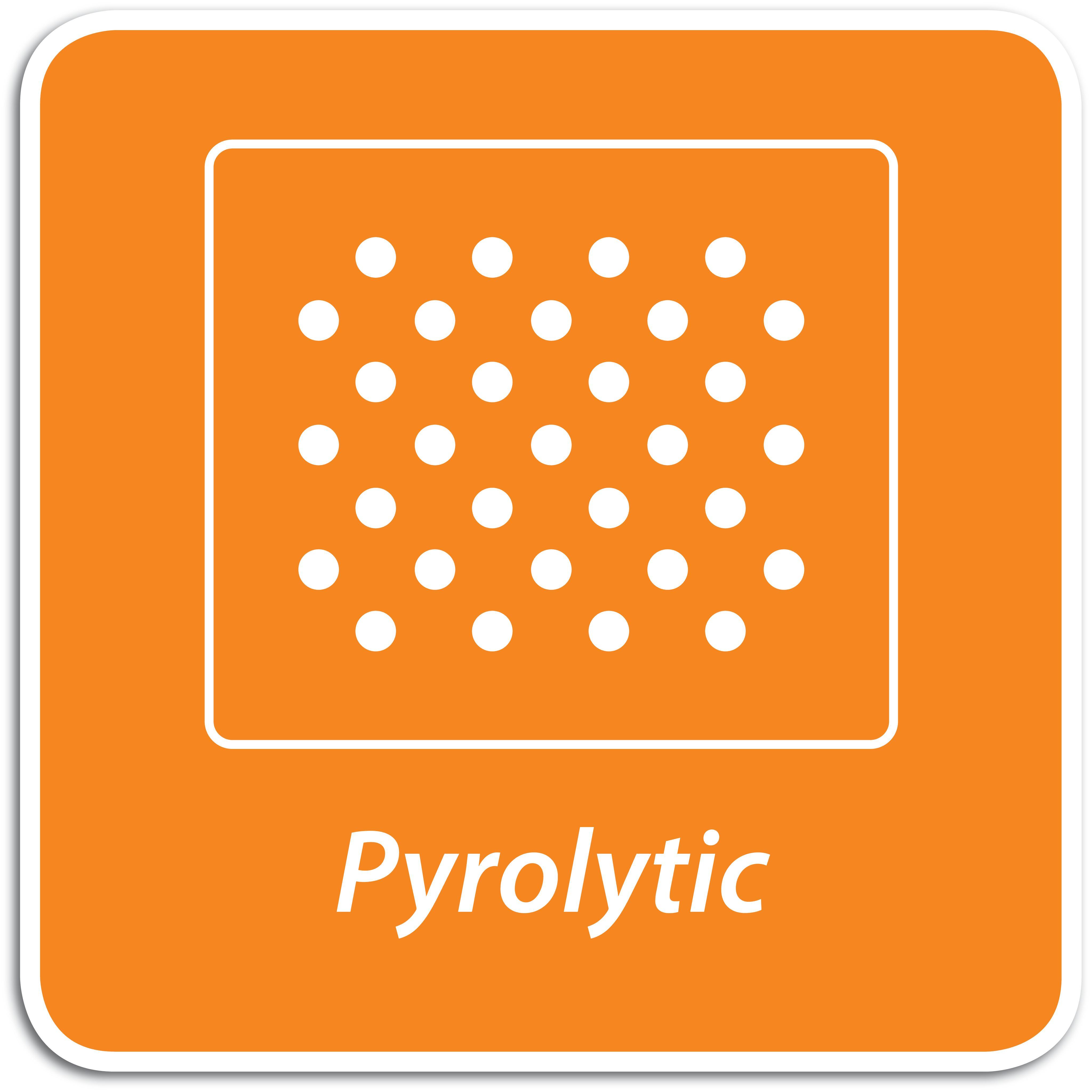 Ο κύκλος λειτουργίας πυρόλυσης αναπτύσσει υψηλή θερμοκρασία για να κάψει τα υπολείμματα τροφών, μετατρέποντάς τα σε στάχτη που σκουπίζεται κατόπιν εύκολα με σφουγγάρι. Οι γυάλινες επιφάνειες ανάκλασης θερμότητας στην πόρτα του φούρνου διασφαλίζουν ότι η εξωτερική θερμοκρασία παραμένει σταθερή, για πρόσθετη ασφάλεια.